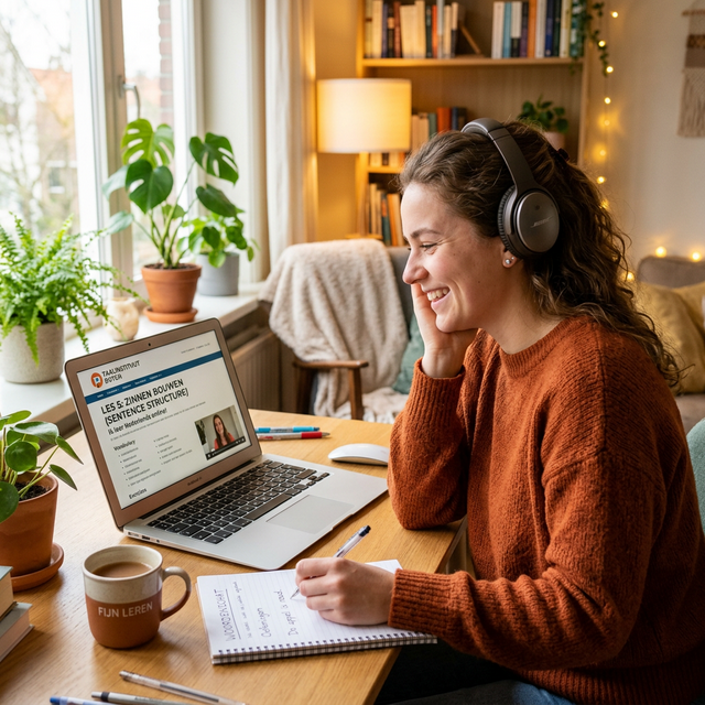 Nuestro nivel más avanzado. Perfecto para profesionales o para quienes se preparan para el Staatsexamen NT2. Nos centramos en estructuras gramaticales complejas, matices del idioma, expresar opiniones con claridad y comprender a hablantes nativos a velocidad normal.